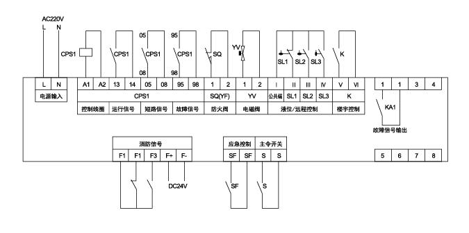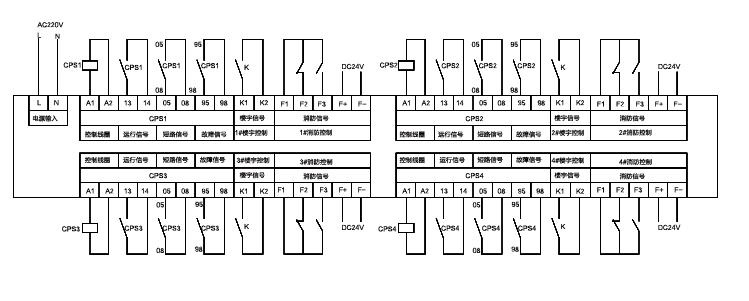 控制模塊:分為主模塊與輔助模塊,它的作用是實現(xiàn)CPS(KB0)的各種工作狀態(tài)和其它控制輸入信號的巡回檢測,保證其安全可靠的運行??刹樵僀PS(KB0)運行狀態(tài)觸點、控制線圈、消防信號、應(yīng)急信號、自動信號、樓宇信號、消防栓等狀態(tài),并根據(jù)預(yù)先設(shè)定的程序進行工作。
