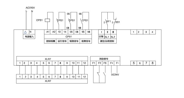 (2) 自帶自動信號輸入端口,例如液位信號SL1,SL2,SL3;樓宇信號K1,K2;消防信號F1,F(xiàn)2,F(xiàn)3等。